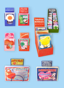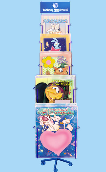 Expositores de pie y de sobremesa… triangulares y cuadrados. Capaces de centralizar, si así lo deseas, todos nuestros artículos en un solo soporte.